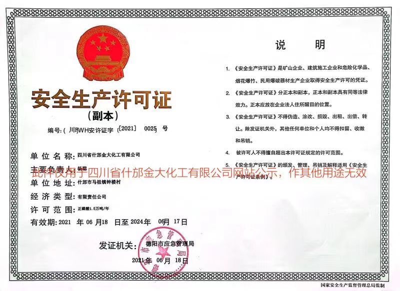 四川省什邡金大化工有限公司-是位于中國四川省的一家專業(yè)生產(chǎn)磷化工系列產(chǎn)品的廠家。所處地理位置資源豐富,交通便利,緊鄰成綿高速復線,距離兩路口火車站1000米。公司成立于1996年,多年來一直從事磷酸鹽的開發(fā)與生產(chǎn)。公司擁有職工65余人,其中各類工程技術人員20人,資產(chǎn)總額5000萬元,占地11000余平方米。